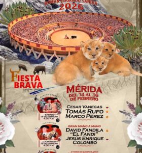 Domingo 15 de febrero: Toros de la ganadería San Antonio para el mano a mano entre David Fandila “El Fandi” (España) y Jesús Enrique Colombo (Venezuela).
