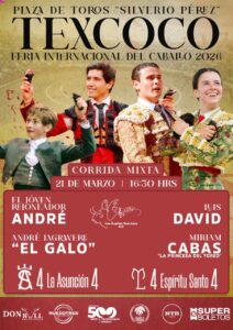 Con estos carteles, la Feria Internacional del Caballo Texcoco 2026 reafirma su importancia como uno de los escaparates taurinos más relevantes del país, apostando por la combinación de figuras, juventud y variedad ganadera para el disfrute de la afición.